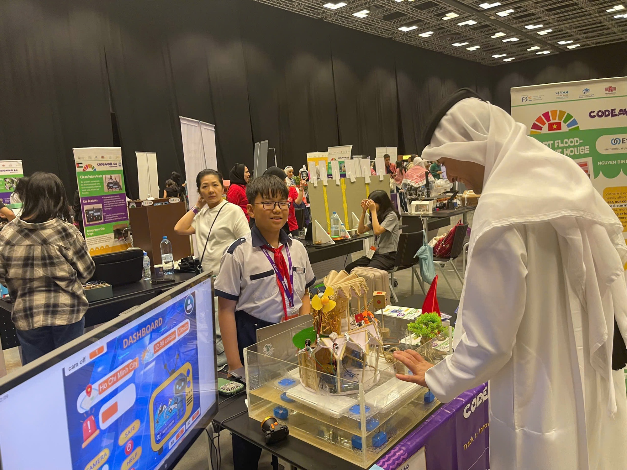 Vòng chung kết quốc tế cuộc thi Codeavour 6.0 đã diễn ra tại Trung tâm hội nghị quốc gia Qatar vào tối qua, 17.5 với hàng trăm đội thi là học sinh tiểu học, THCS, THPT đến từ 18 quốc gia, vùng lãnh thổ.